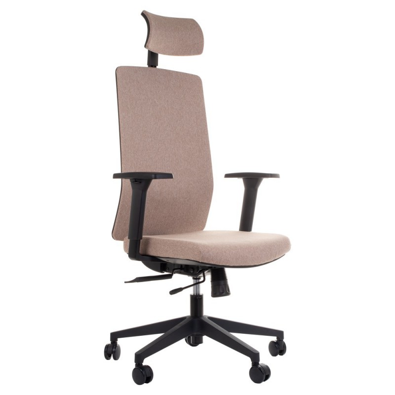 regulacja wysuwu siedziska, siedzisko tapicerowane pianką o gęstości T50 (50 kg/m3), stabilna nylonowa podstawa, kółka miękkie przystosowane do powierzchni twardych, płynna regulacja wysokości siedziska, oparcie z regulowanym wyprofilowaniem lędźwiowym, mechanizm synchroniczny z możliwością blokady odchyłu w kilku pozycjach, funkcja "anti-shock" - po zwolnieniu blokady oparcie nie uderza w plecy, podłokietniki regulowane (góra-dół) z miękkimi (poliuretanowymi) nakładkami, zagłówek regulowany (góa-dół, przód-tył), oparcie tapicerowane z przodu i z tyłu, podnośnik klasy 4.
